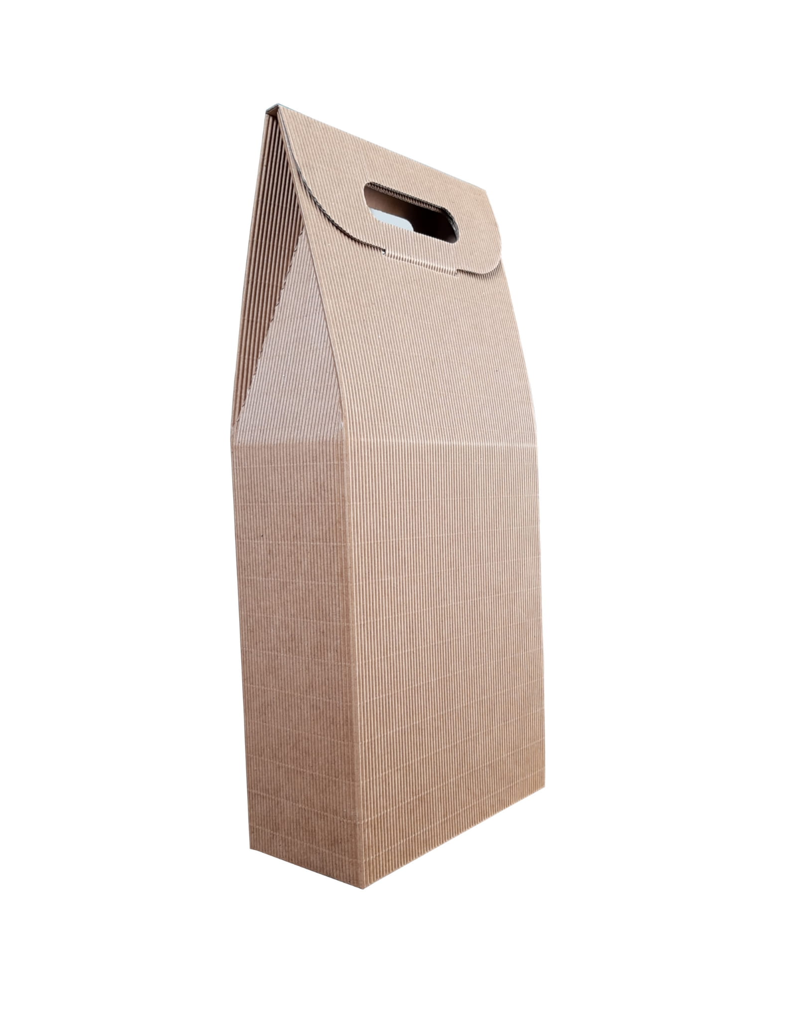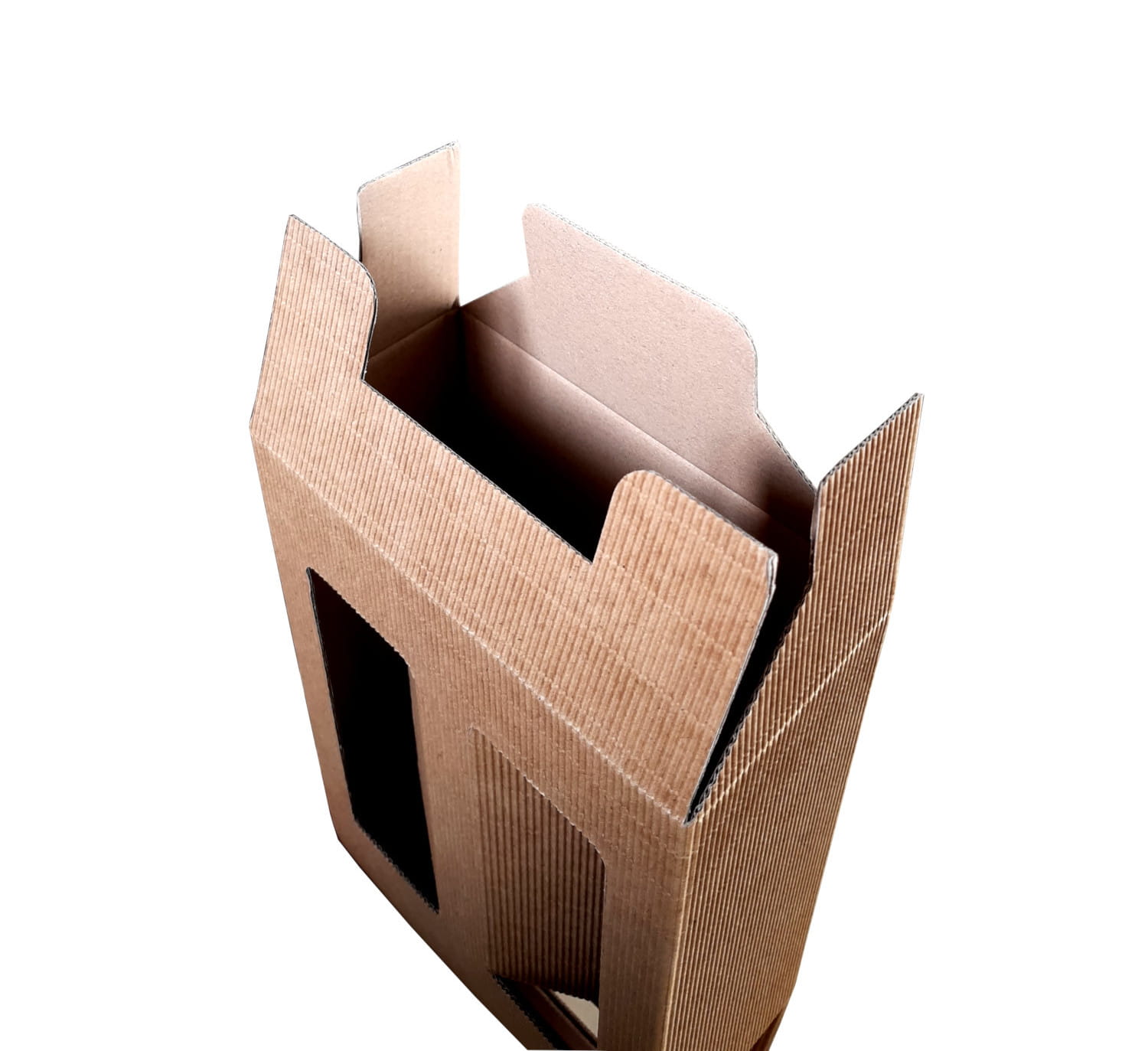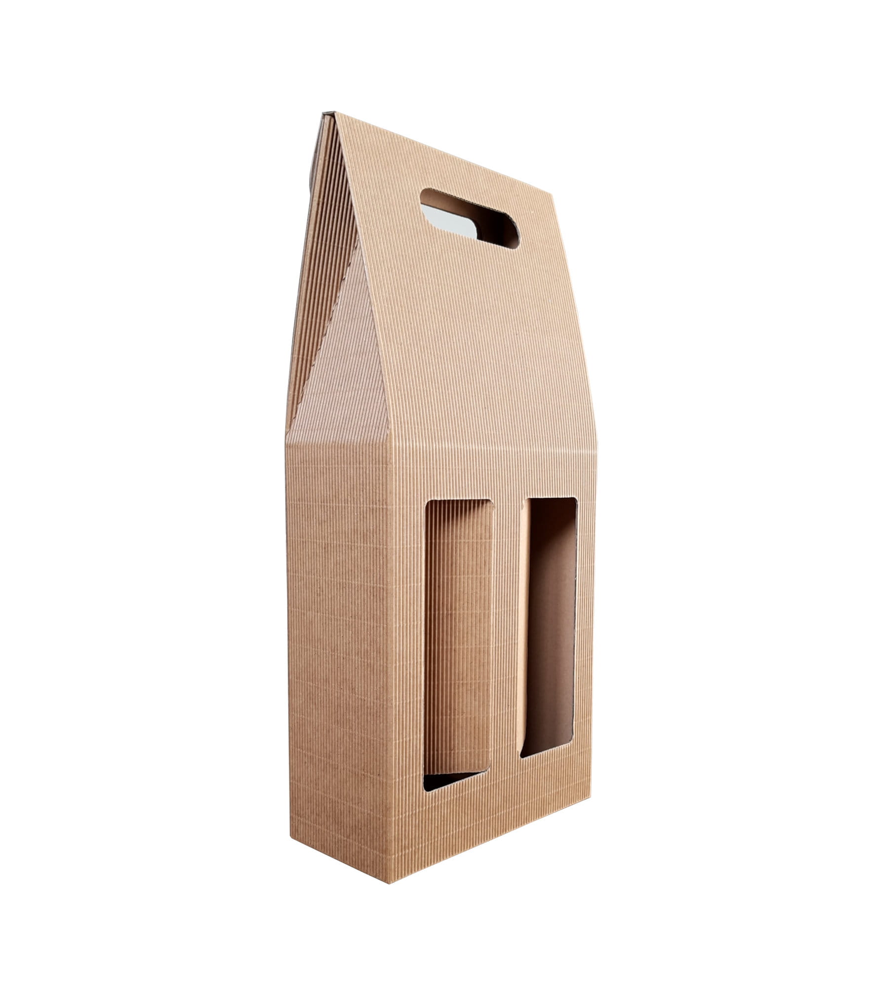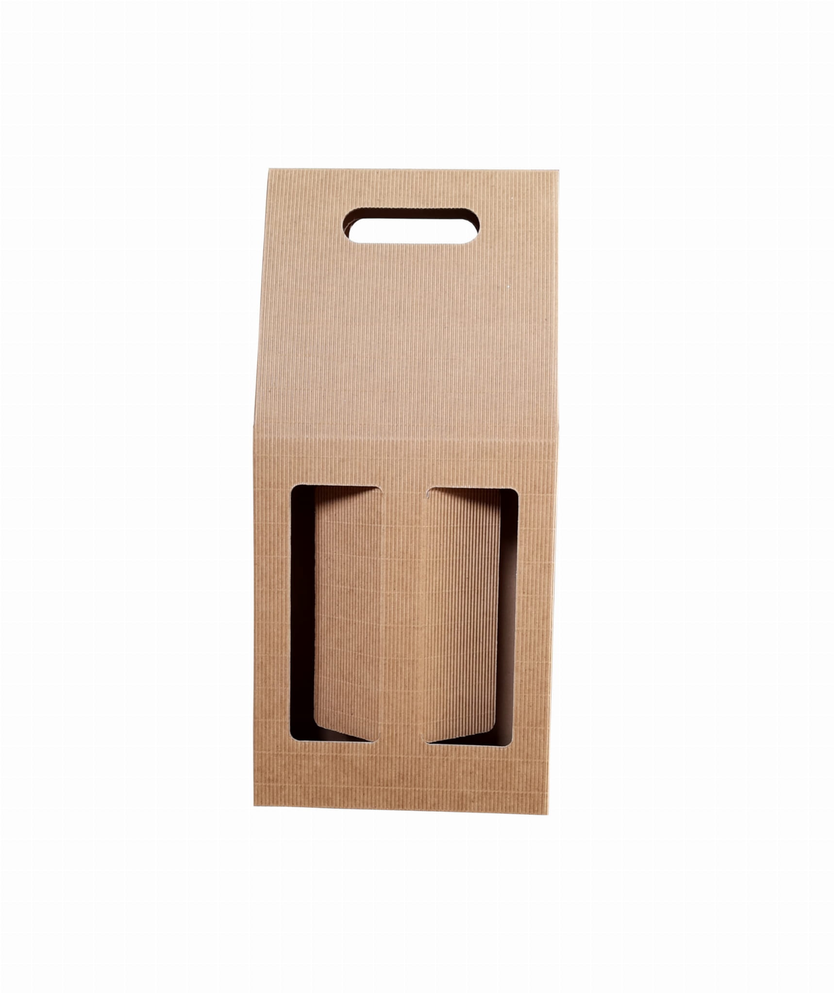 Karton prezentowy, który idealnie nadaje się do zapakowania dwóch butelek wina lub innych alkoholi. Karton wykonany został z mocnej, czterowarstwowej tektury, gdzie zewnętrzna warstwa posiada falistą strukturę z pięknego kraftowego papieru.