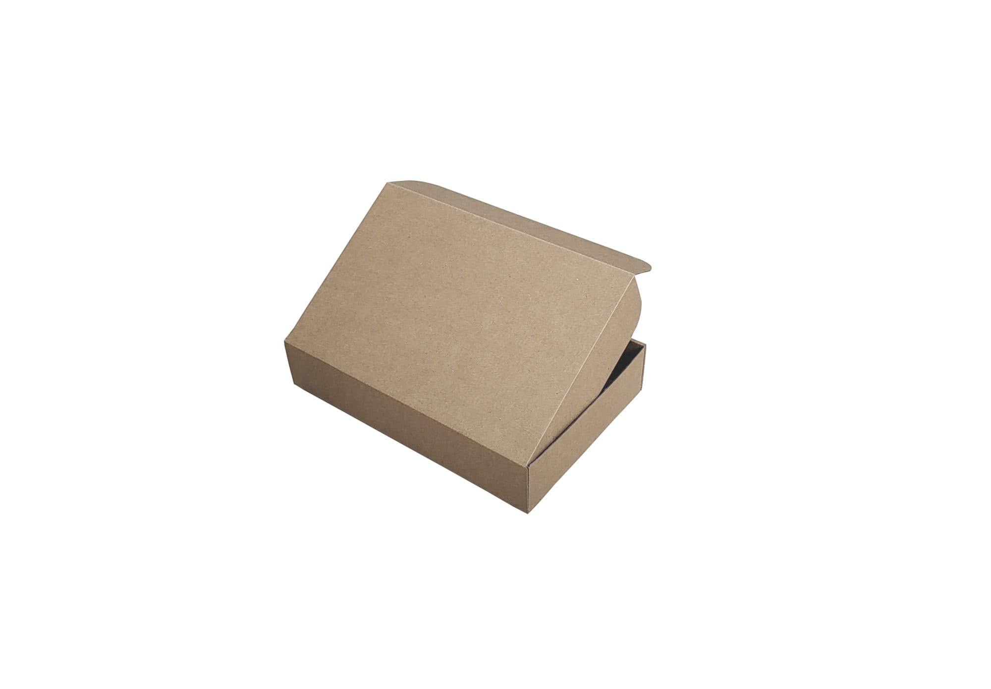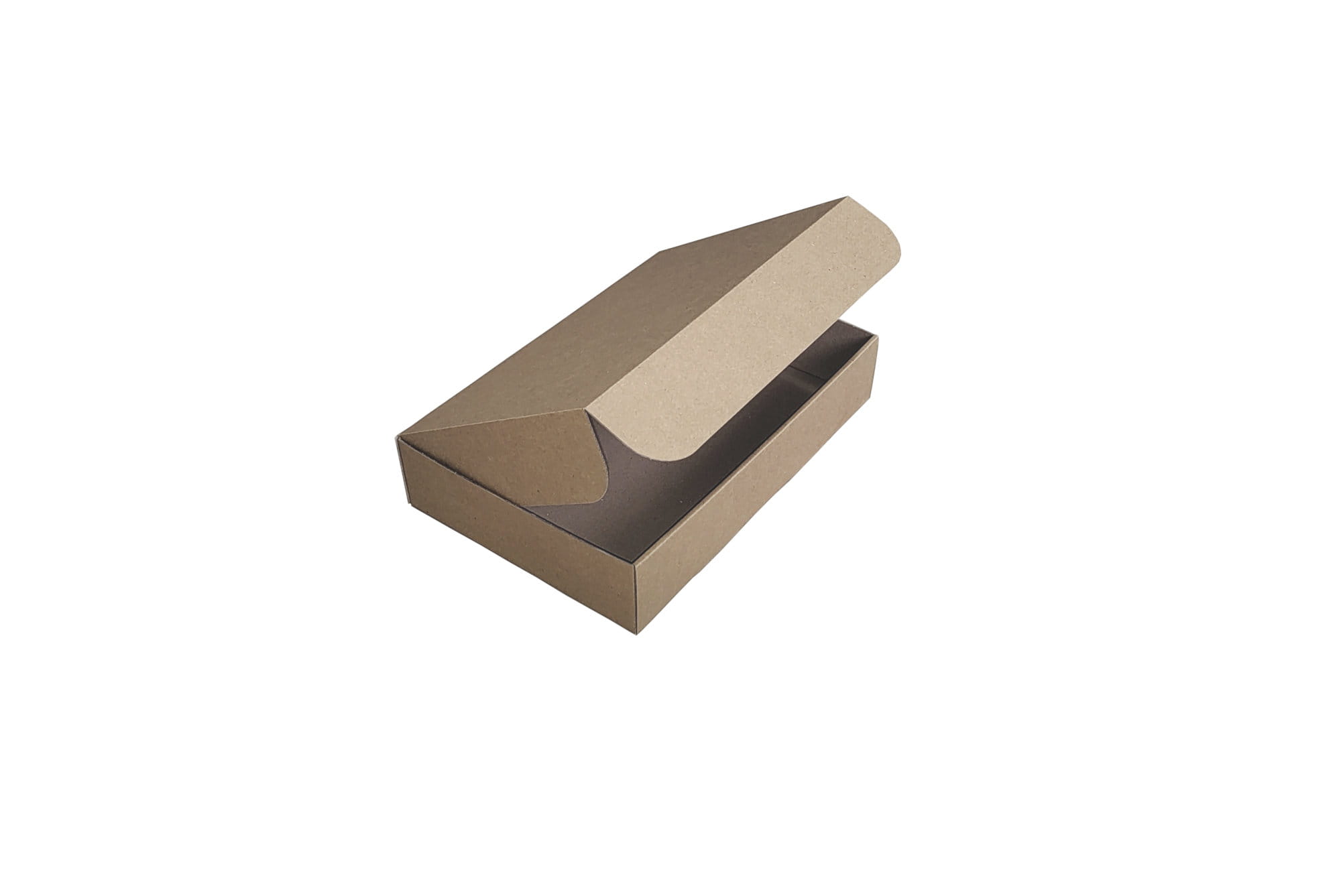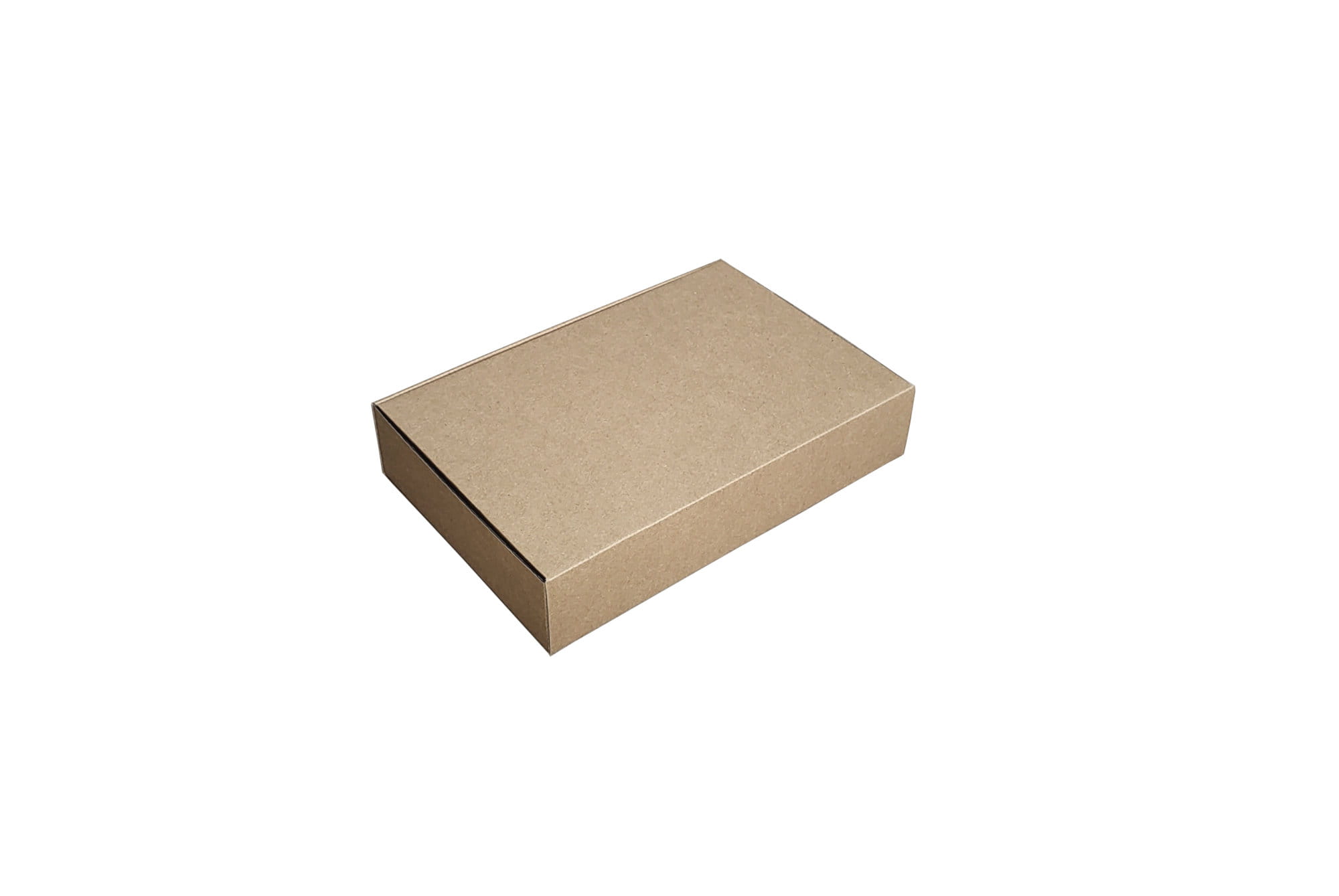 Pudełko fasonowe z wieczkiem zamykanym o wymiarach 250x200x100, wykonane z tektury trójwarstwowej, szarej. Pudełko w bardzo wygodny i szybki sposób składa się bez użycia taśmy klejącej.