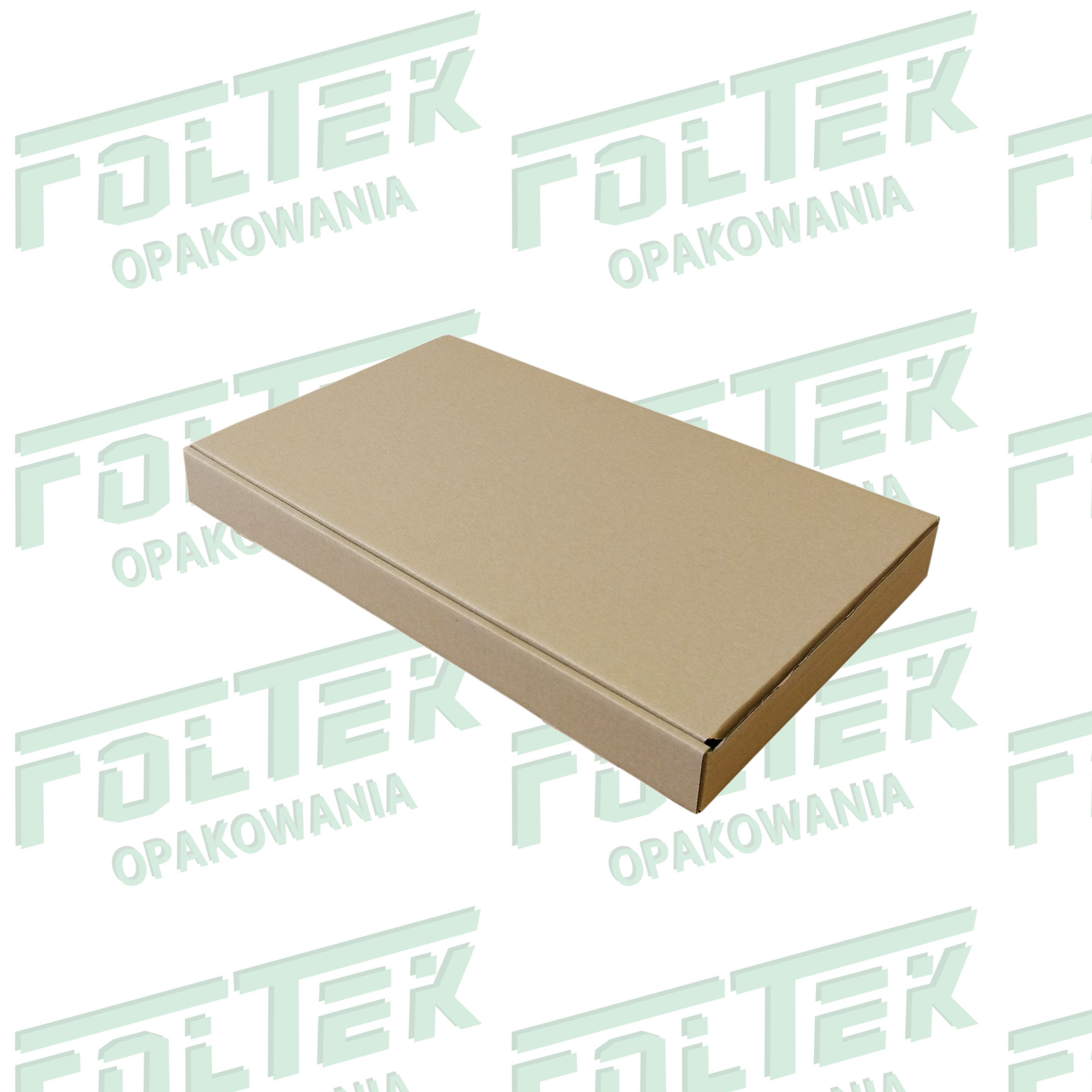 Pudełko fasonowe z wieczkiem zamykanym o wymiarach 500x300x50, wykonane z tektury trójwarstwowej, szarej. Pudełko w bardzo wygodny i szybki sposób składa się bez użycia taśmy klejącej.